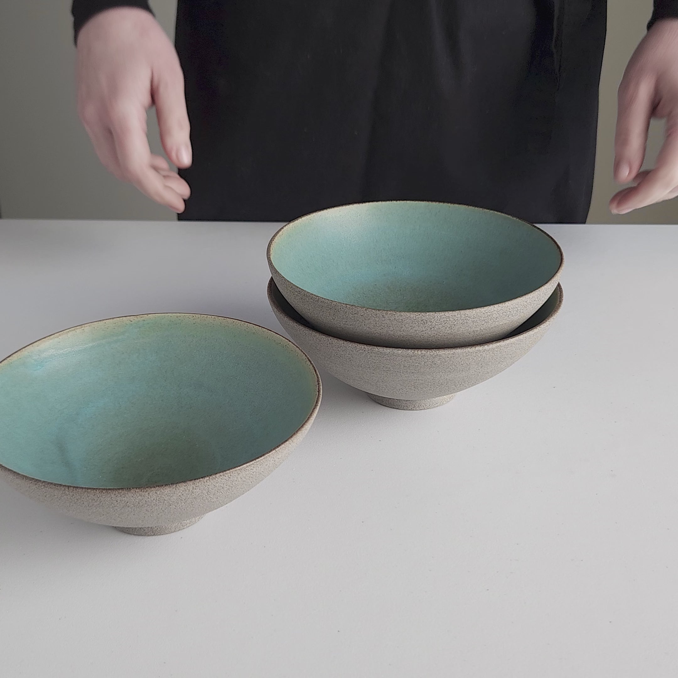 The interior features a rich turquoise glaze that evokes glacial waters, adding a refreshing contrast to the raw, unglazed exterior. The matte texture of the clay outside offers a natural tactile experience, highlighting the handcrafted quality of the piece. With its minimalist silhouette and subtle interplay of color and texture, the Eletha Ice bowl is ideal for modern homes, boutique hotels, fine dining restaurants, or as a thoughtful wedding or housewarming gift. A collectible piece for any private collector or lover of handmade decor.