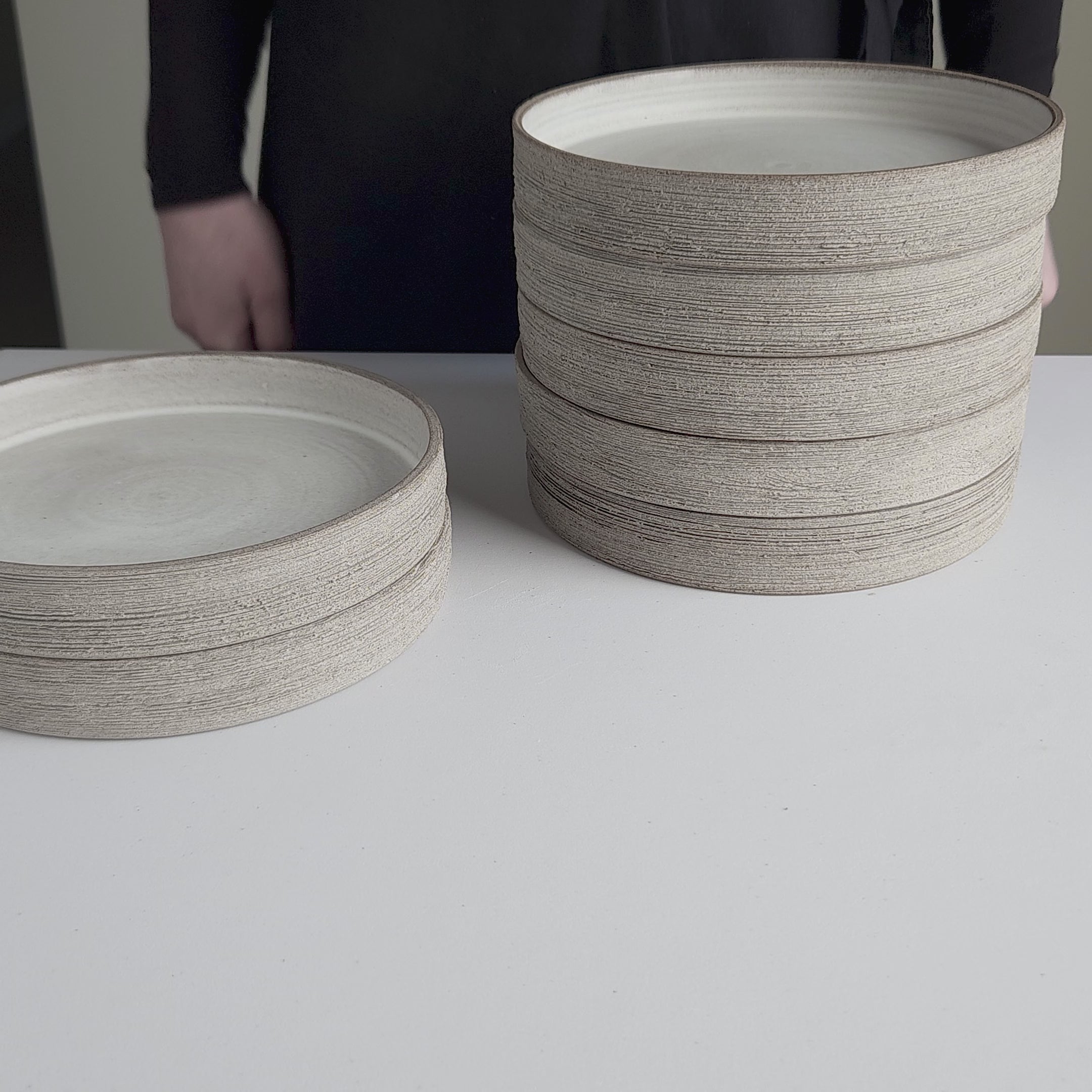 Set Nedar Cubit is a refined collection of handmade ceramic plates, created for the most sophisticated culinary spaces. Carefully shaped on the potter’s wheel from dark stoneware clay, each plate features a tall, straight edge and a perfectly flat surface—an ideal form for elegant food plating. The hand-pressed spiral at the center adds a subtle artisan signature, making every piece truly unique.