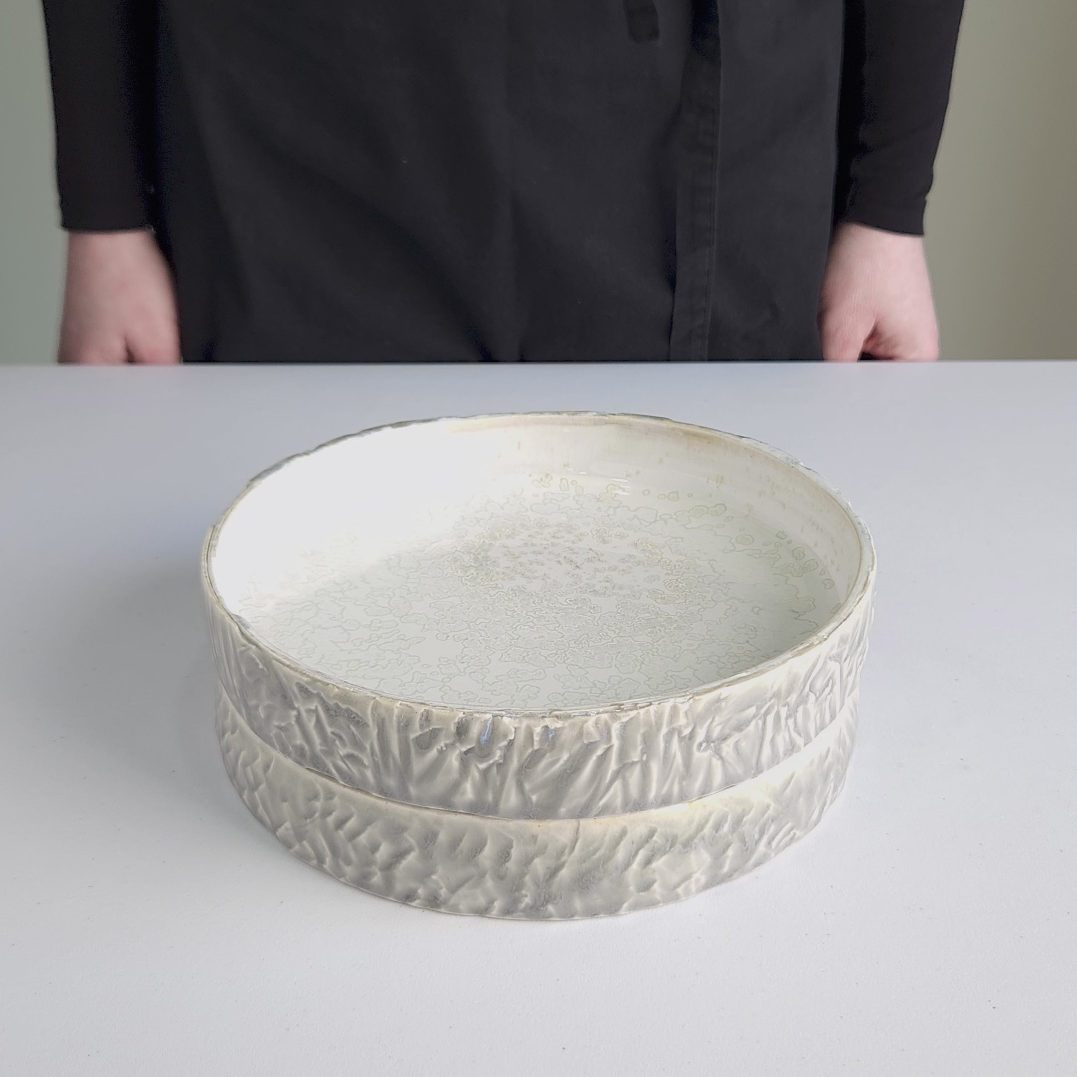 A glossy gray glaze covers the exterior, catching the light beautifully, while the interior is finished with a complementary glaze in soft gray tones. This combination creates a harmonious, cohesive design that blends luxury with handcrafted artistry. Strong, durable, and visually striking, this plate is perfect for premium fine dining restaurants, top chefs, boutique hotels, and private collectors. The Lumon Quill transforms any culinary creation into a work of art, making it an essential choice for those who value both function and beauty in their tableware.